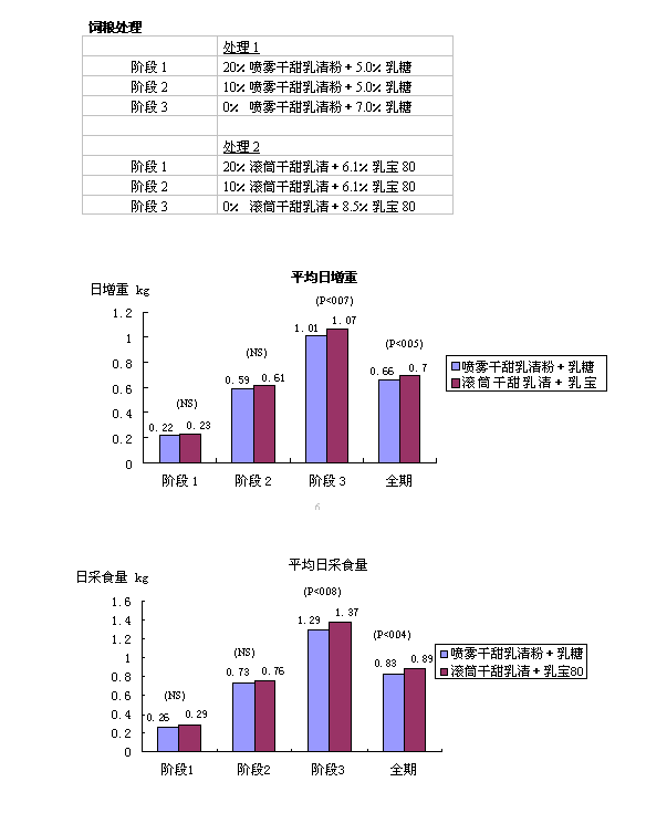 3. 本試驗在飼養(yǎng)場中進行,全部使用實際生產(chǎn)中的典型配方。試驗再次證實了,由滾筒干燥工藝生產(chǎn)的產(chǎn)品(如:乳寶80、滾筒干甜乳清)是優(yōu)秀的乳糖原料,與傳統(tǒng)的噴霧干甜乳清粉、結(jié)晶乳糖相比,具有更突出的表現(xiàn)。